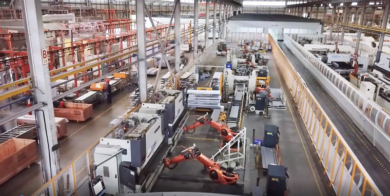 ▲電梯門板自動化生產線