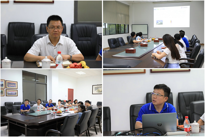 ▲松山湖科創(chuàng)局領(lǐng)導(dǎo)討論項(xiàng)目市場應(yīng)用情況