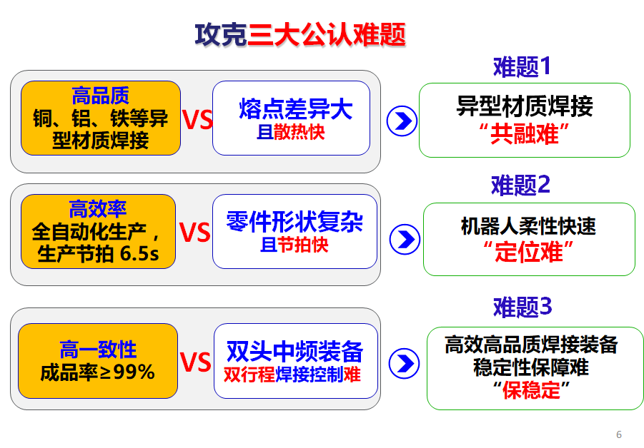 “異型材質高效雙頭中頻焊接全自動成套加工設備”項目攻克了三大行業公認難點:異型材質焊接“共融難”、機器人柔性快速“定位難”和高效高品質焊接裝備穩定性保障難“保穩定”。