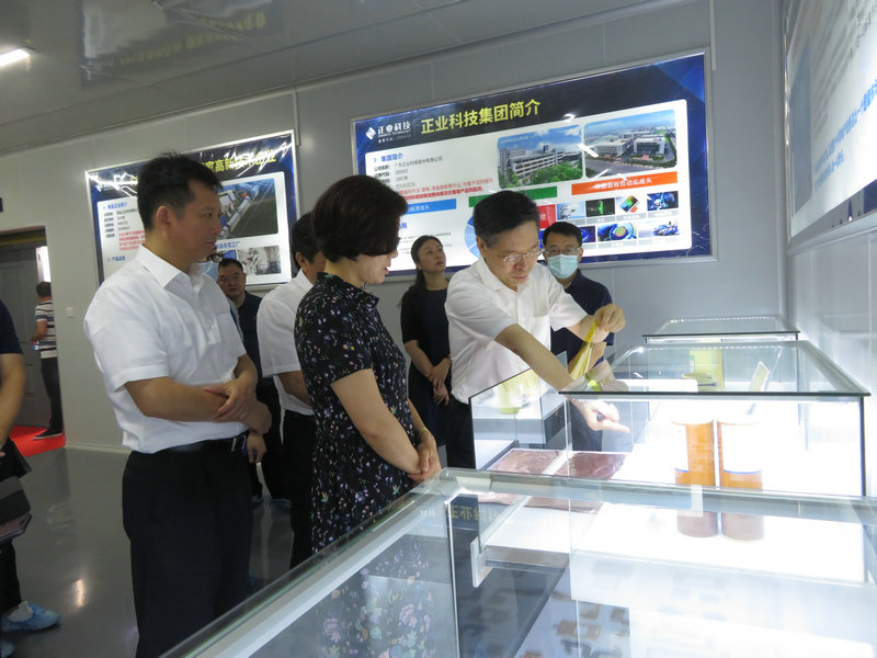 在調(diào)研過程中,吳副省長一行參觀了南昌正業(yè)生產(chǎn)車間,正業(yè)科技董事長徐地華全程陪同并介紹南昌正業(yè)的發(fā)展歷程、發(fā)展規(guī)劃、 產(chǎn)品及生產(chǎn)工藝,吳副省長仔細(xì)詢問電子材料的研發(fā)、應(yīng)用和市場開發(fā)等具體情況。
