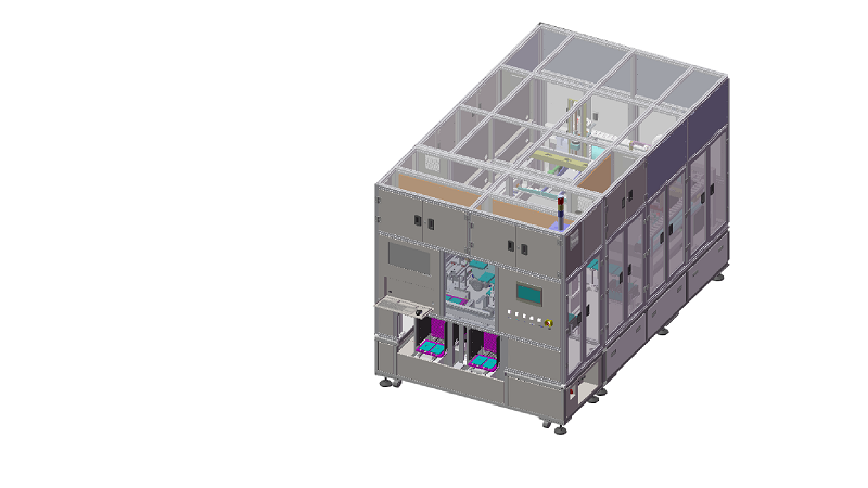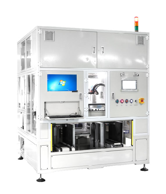 一種測試電池IV、開路電壓、內(nèi)阻、溫度、條碼掃描、極耳整形功能及電池自動輸出的全自動化測試設備,采用四軸機器人+CCD定位技術+伺服+電池測試儀等方式,實現(xiàn)換型時間短、維護方便、操作簡單。