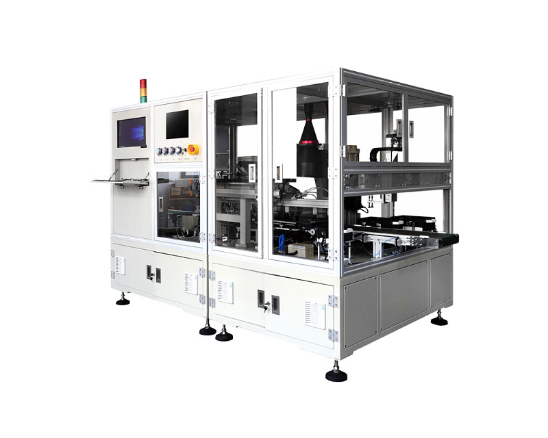 一套成像系統(tǒng)、兩套機械手在線檢測分析,針對方形聚合物軟包電芯或成品電池進行在線全自動檢測,將不良品挑選出來,設備前后端可與產(chǎn)線對接。