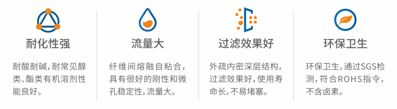 雙組份濾芯,選用新型纖維材料,采用自熔粘結方式加工而成,具有高精度、強耐壓、使用壽命長等特點,特別對粘度高的過濾液效果更佳。