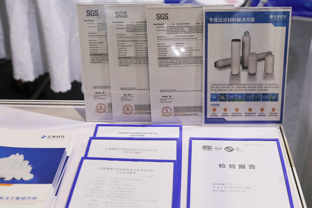 展會上,公司展示了最新的過濾解決方案,包括聚丙稀熔噴濾芯、大流量折疊濾芯、囊式過濾器、尼龍折疊濾芯、聚醚砜折疊濾芯、聚四氟乙烯折疊濾芯等產品。