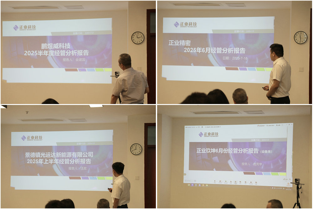 正業科技各經營單位負責人依次上臺對2025年上半年工作完成情況及下半年工作規劃做出詳細的匯報,全面復盤上半年工作成效,系統部署下半年攻堅任務。
