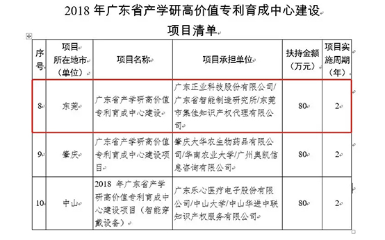 近日,正業(yè)科技成為廣東省產(chǎn)學(xué)研高價(jià)值專利育成中心建設(shè)項(xiàng)目建設(shè)單位之一,目前已開(kāi)展項(xiàng)目建設(shè)相關(guān)工作,這是廣東省知識(shí)產(chǎn)權(quán)局對(duì)正業(yè)科技技術(shù)創(chuàng)新及專利管理能力的高度肯定和認(rèn)可。