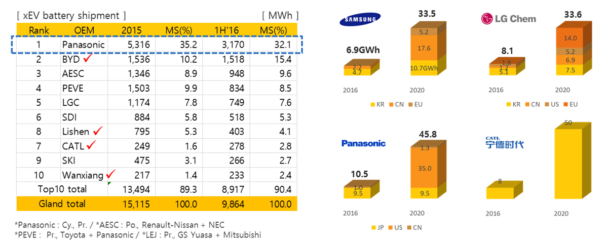 (電池供應廠出貨量前十名)
